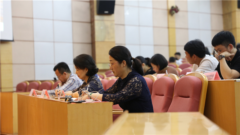 全体党委理论学习中心组成员、教职工党员和部分学生党员聆听报告。