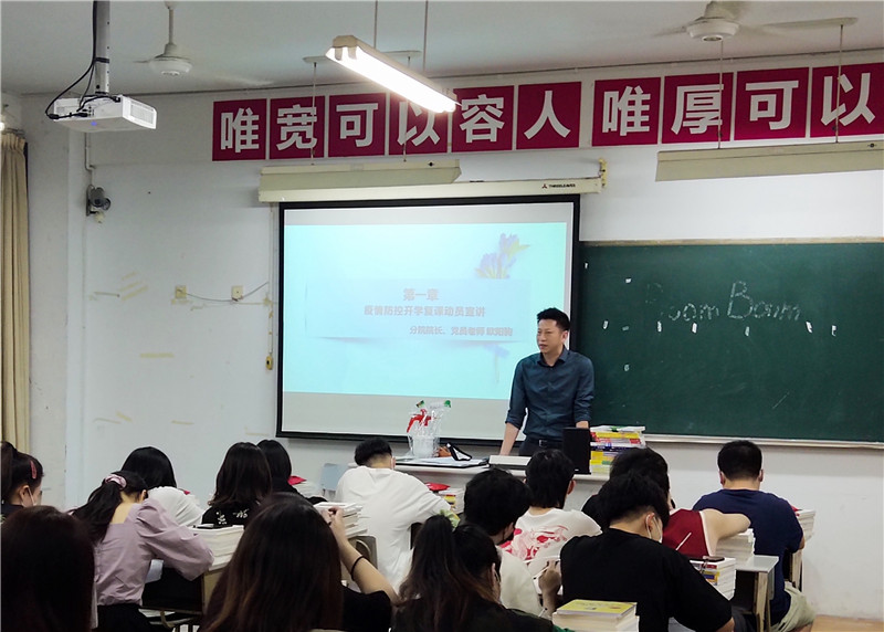 提前谋划,按下返校复课“快进键”。分院党员干部坚守工作岗位,做好提前谋划,积极落实疫情期间各项返校复课准备工作。分院院长欧阳驹多次组织召开分院疫情防控与复课工作小组会议,研究制定分院《2020年春季开学工作方案》、《疫情防控应急处置预案》等工作制度;分院副院长陈贤平、王慧到教学场所实地检查,做好设施设备调试与清洁消毒工作指导;党总支书记姜蕾组织教师进行模拟演练,熟悉应急处置流程,共同按下开学复课“快进键”。