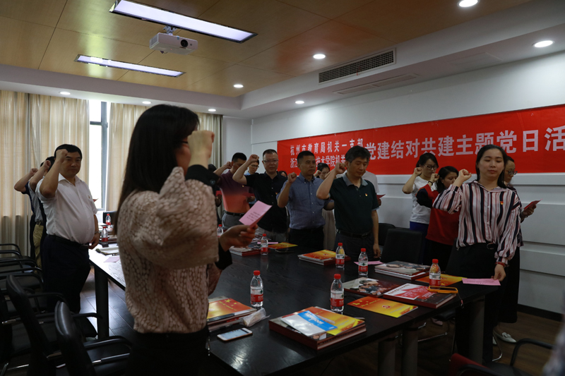 2018年6月6日上午,杭州市教育局机关一支部与浙江育英职业技术学院机关一支部在学院举行结对共建活动。杭州市教育局机关一支部书记、组织处(新社会组织党委)处长仰国庭和学院机关一支部书记陈金金介绍了各自支部的基本情况。双方共同重温入党誓词,一起学习习近平在北京大学师生座谈会的讲话和在纪念马克思诞辰200周年大会的讲话精神,并交流了各自党建工作经验和体会。