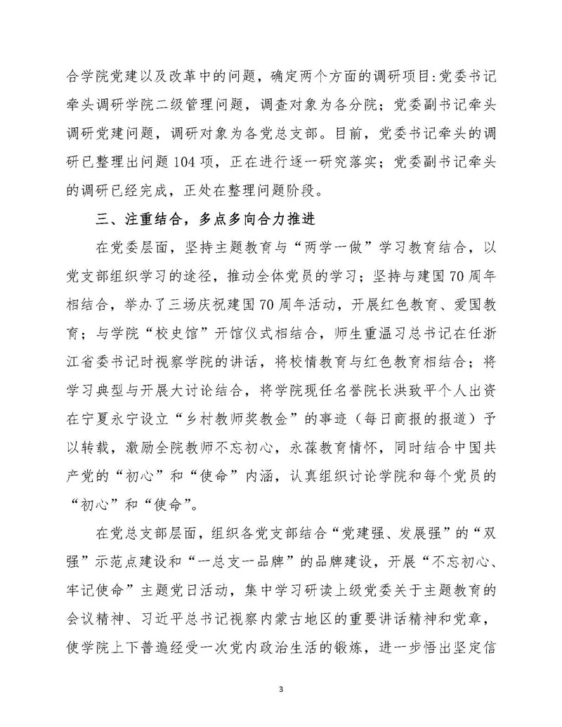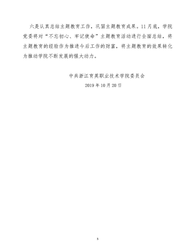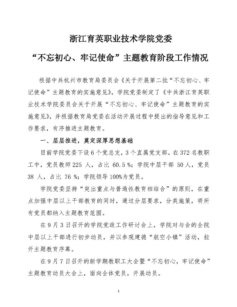 中共浙江育英职业技术学院党委“不忘初心、牢记使命”主题教育阶段工作情况