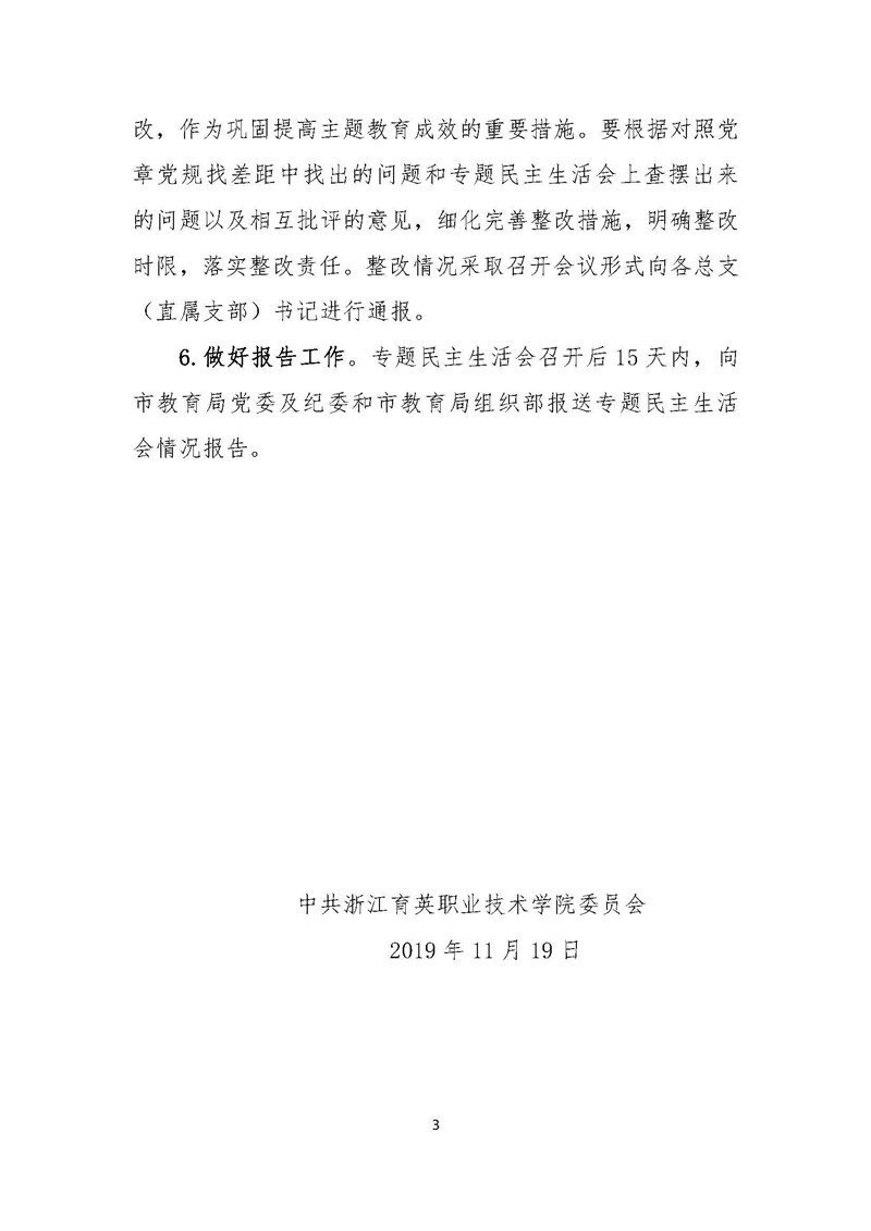 中共浙江育英职业技术学院委员会“不忘初心、牢记使命”专题民主生活会方案