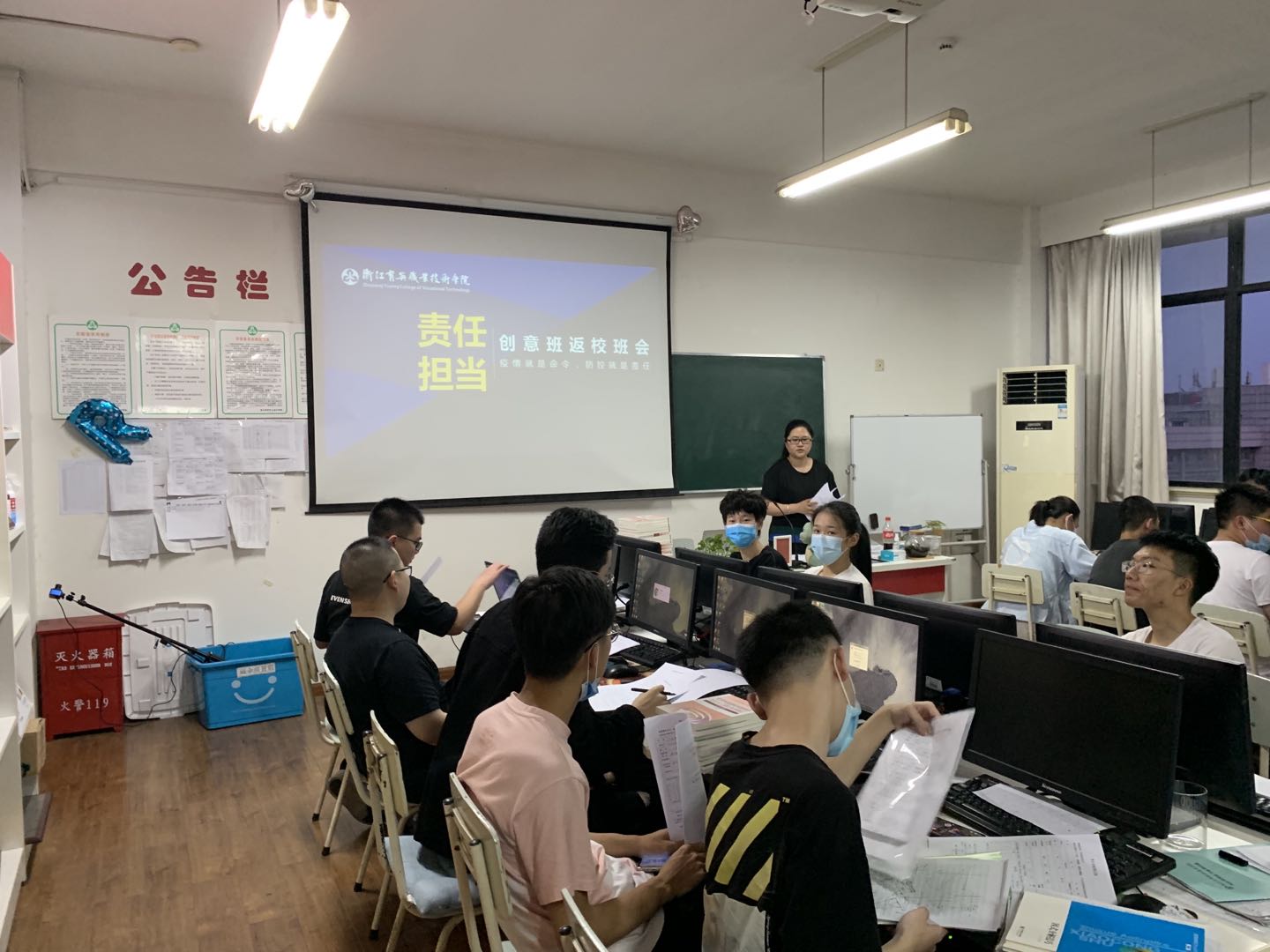 2020年5月11日晚上,计算机应用技术软件开发方向的18、19创意班的同学在学业导师、班主任、教练的组织下,在3605教室进行了疫情防疫防控班会。