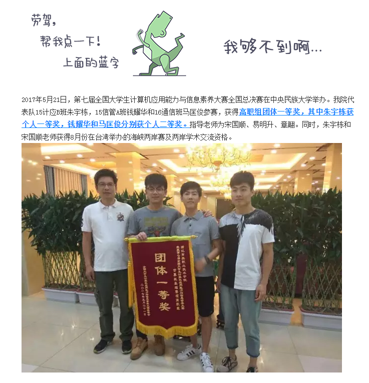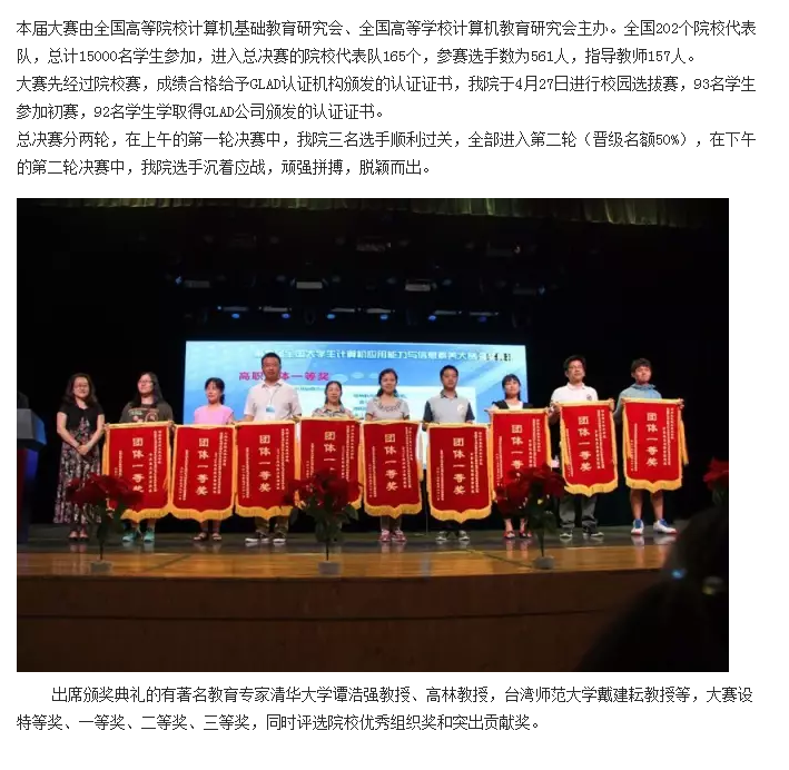 我院代表队荣获第七届全国大学生计算机应用能力与信息素养大赛总决赛高职组团体一等奖
