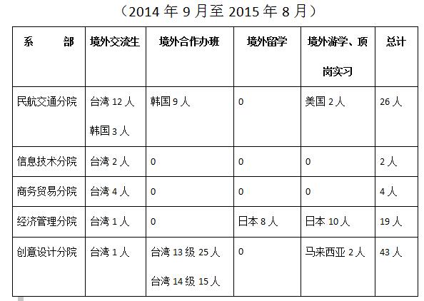 学院境外交流学生数据统计(2014年9月-2015年8月)