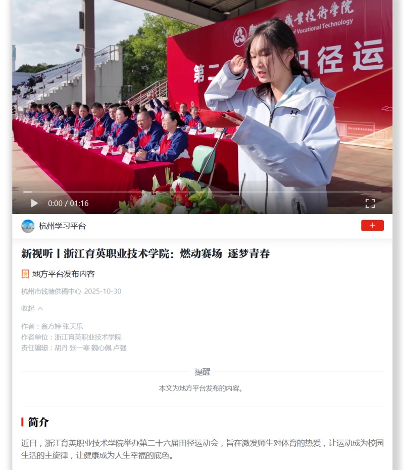 【学习强国】新视听丨浙江育英职业技术学院:燃动赛场 逐梦青春