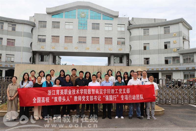 中国教育在线浙江站讯 (记者 陈显婷 通讯员 刘飞燕)6月20日,浙江育英职业技术学院数智商贸学院党总支携全国“双带头人”教师党支部书记“强国行”专项行动团队走进湖州市吴兴区埭溪镇,通过政校企三方联动,探索美妆产业与数字贸易融合发展新路径,为区域经济高质量发展与乡村振兴注入动能。