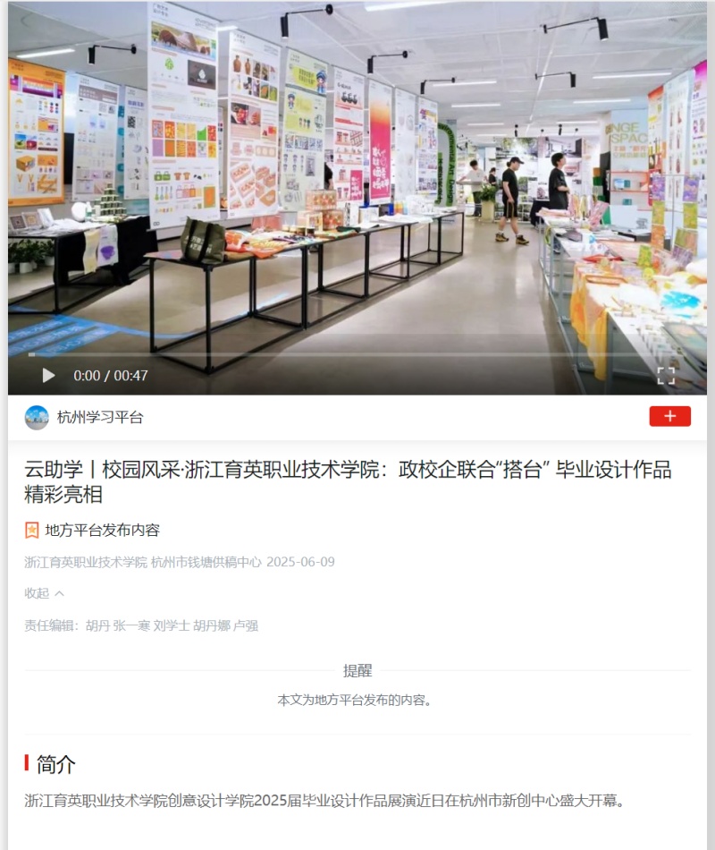 【学习强国】云助学丨校园风采·浙江育英职业技术学院:政校企联合“搭台” 毕业设计作品精彩亮相