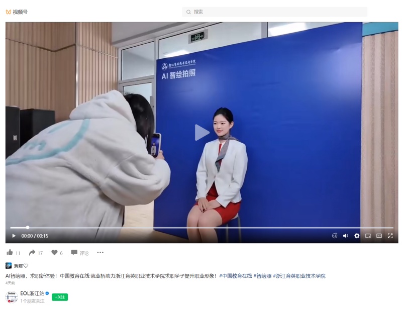 【中国教育在线】AI智绘照,求职新体验!中国教育在线·就业桥助力浙江育英职业技术学院求职学子提...
