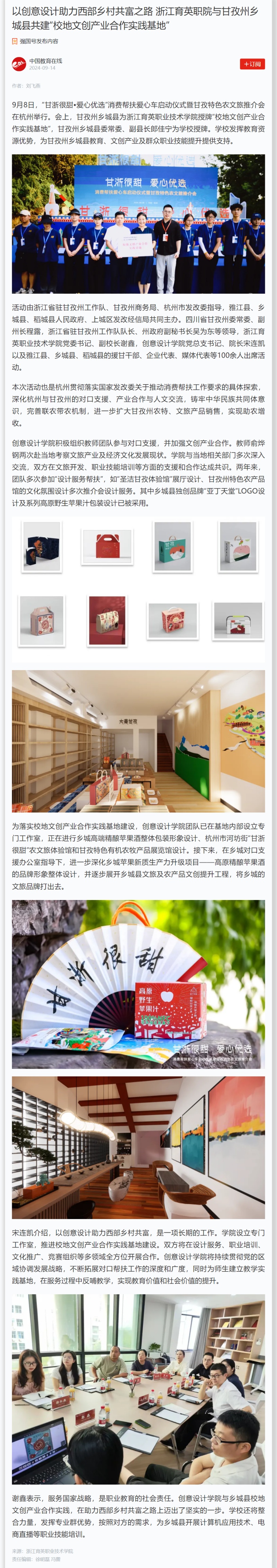 【学习强国】以创意设计助力西部乡村共富之路 浙江育英职院与甘孜州乡城县共建“校地文创产业合作...