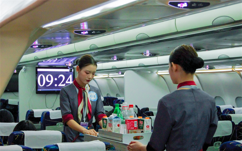 比赛期间,参赛选手们在理论知识、客舱服务、中英文机上广播、机上急救、安全演示与应急设备使用等环节进行比拼。