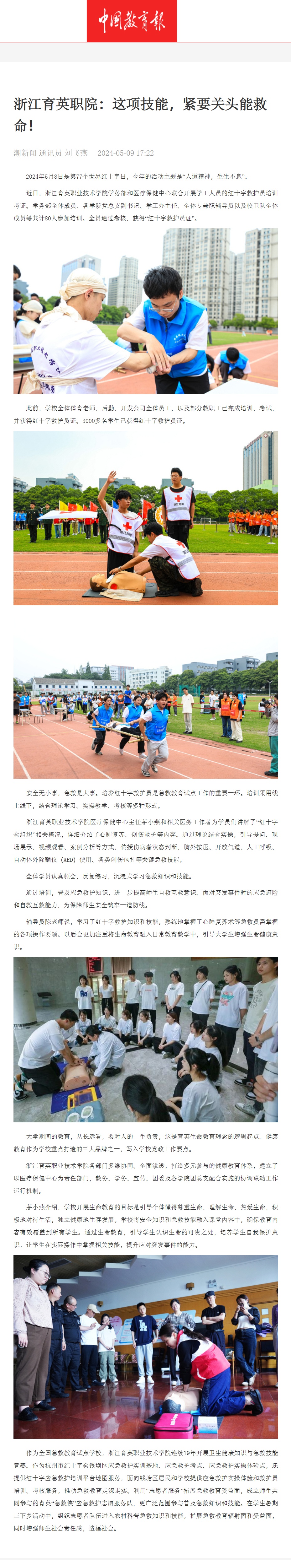 【中国教育报】浙江育英职院:这项技能,紧要关头能救命!