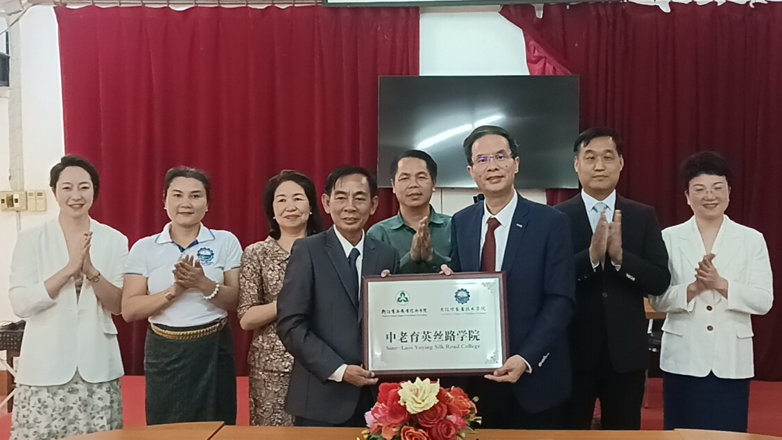 3月27日,浙江育英职业技术学院与老挝万象省技术学院共同举行“中老育英丝路学院”签约挂牌仪式。老挝教育部职业技术教育司副司长通萨亲临现场,见证了这一重要时刻。