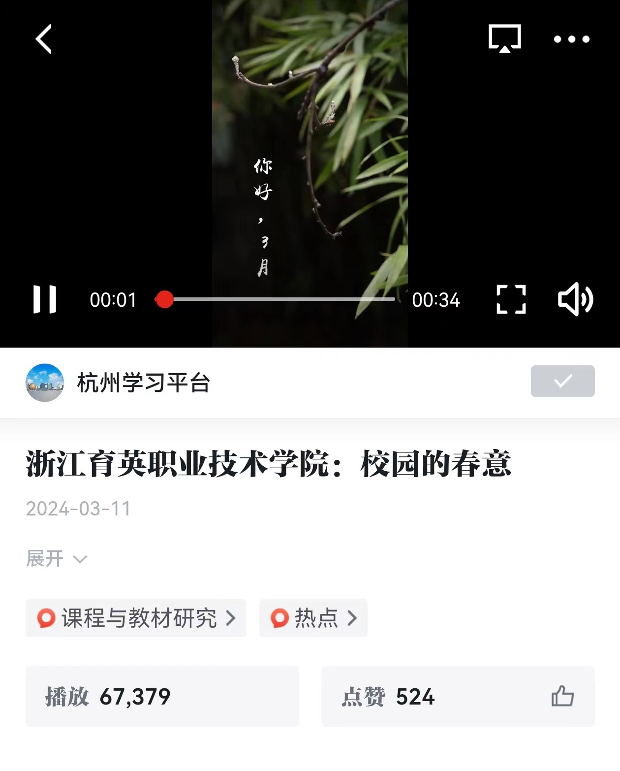 【学习强国】浙江育英职业技术学院:校园的春意