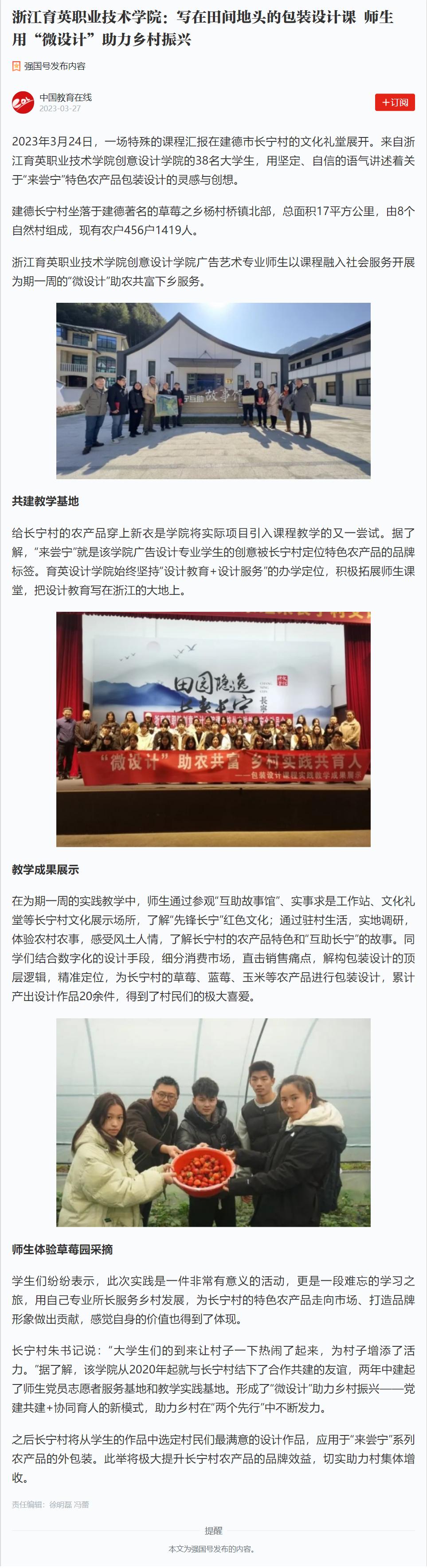 【学习强国】浙江育英职业技术学院:写在田间地头的包装设计课 师生用“微设计”助力乡村振兴
