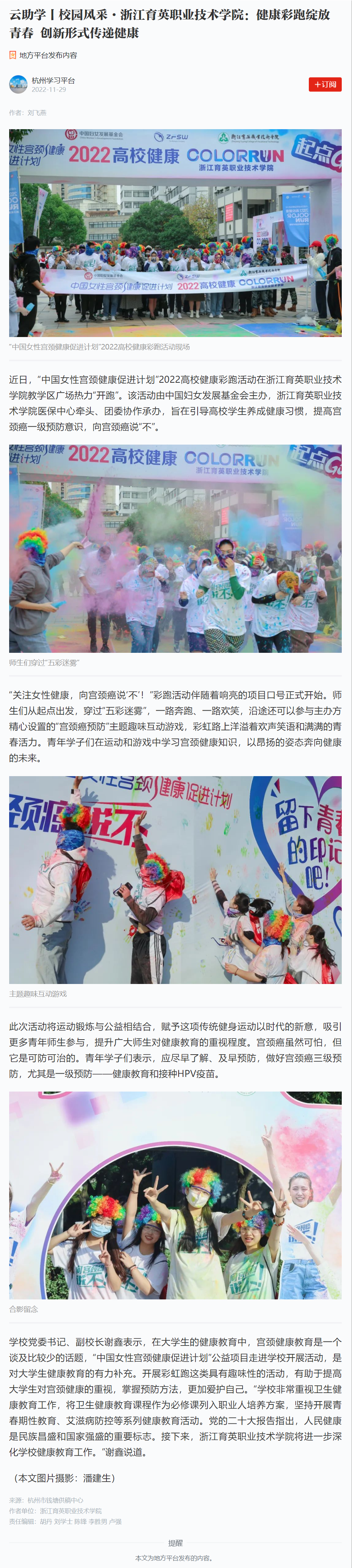 【学习强国】云助学丨校园风采·浙江育英职业技术学院:健康彩跑绽放青春 创新形式传递健康