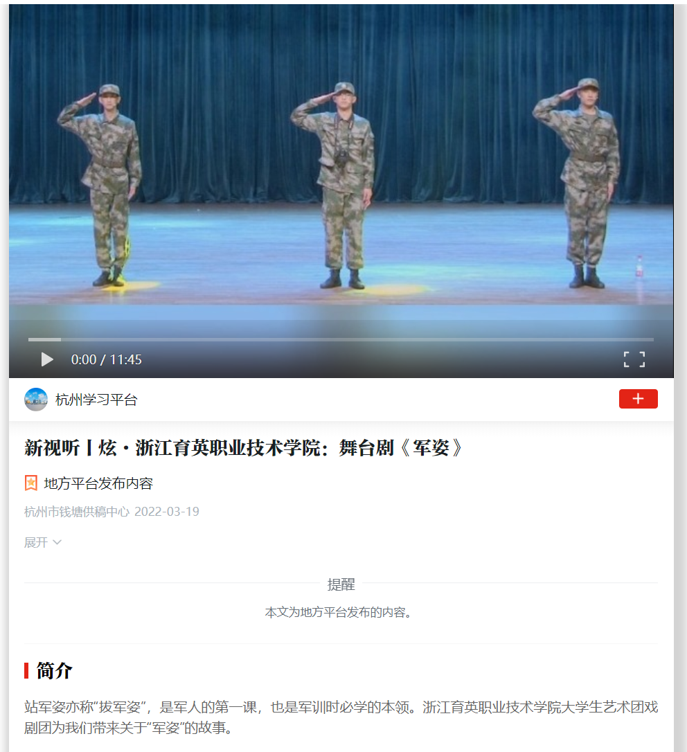 【学习强国】新视听丨炫·浙江育英职业技术学院:舞台剧《军姿》