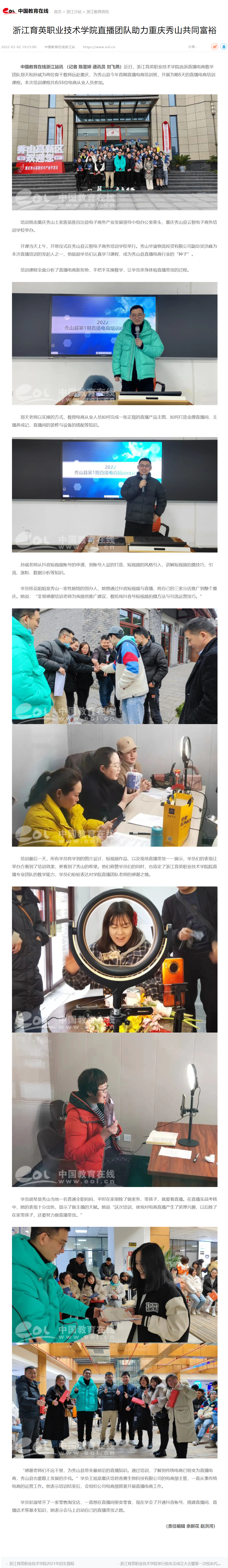 【中国教育在线】浙江育英职业技术学院直播团队助力重庆秀山共同富裕