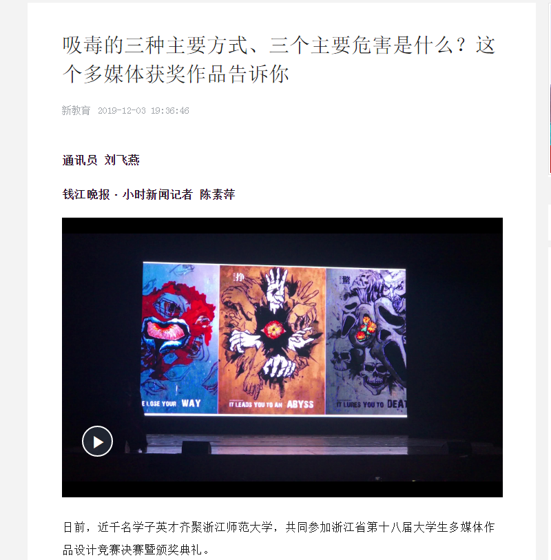 从初赛到现场决赛,经过精彩答辩和激烈角逐,浙江育英职业技术学院创意设计分院17广告设计与制作B班学生张驰作品《家破人亡》获高职组海报类一等奖,同时获本科+高职所有海报类作品唯一特别大奖,该作品将作为公安厅的“禁毒”宣传作品使用。