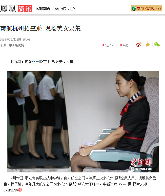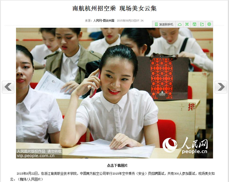 9月22日,人民网图说中国、新华社新华网、中新社中国新闻图片网报道了在我院举行的中国南方航空公司招聘活动,凤凰网、光明网、中青网、网易新闻等20多家媒体转载。