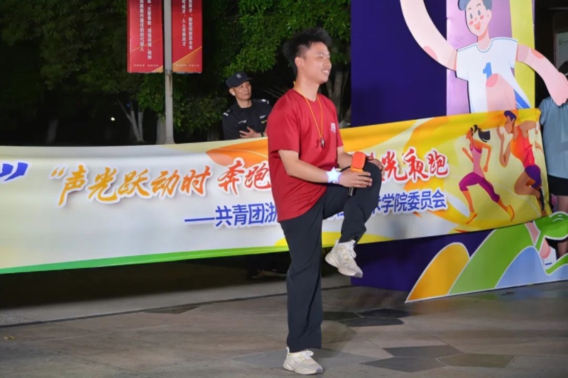 为积极响应教育部与团中央的相关部署,引导和鼓励广大青少年“走下网络、走向操场、走近自然”。近日,“浙青年·爱运动”——“声光跃动时 奔跑正青春”荧光夜跑活动于教学楼广场盛大开启。公共教学部党总支副书记、副主任谢剑峰,校团委副书记周舟出席本次活动,活动吸引了2000余名学生参与。