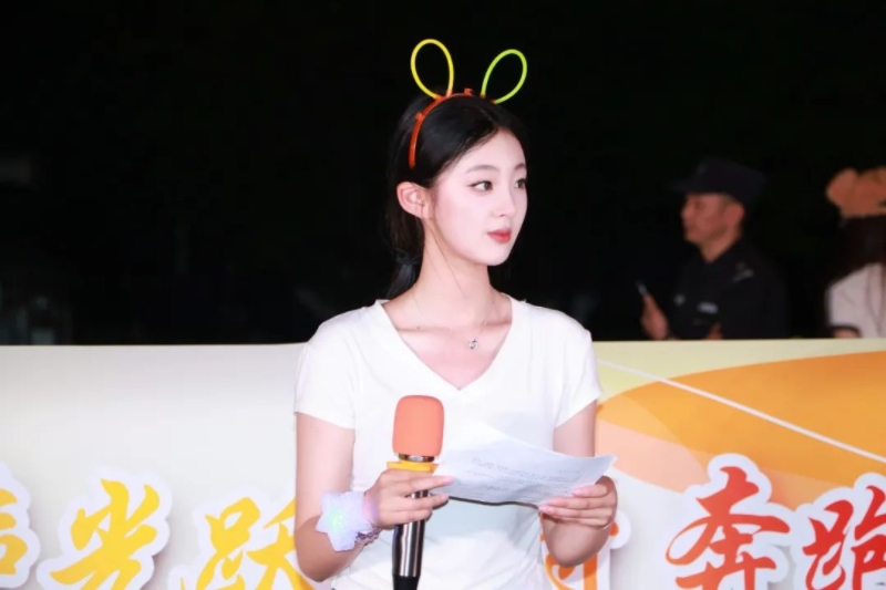 当晚霞隐入天际,主持人毕雅琪随着音乐的前奏,声音铿锵有力、饱含激情地呐喊:“这里是荧光夜跑的超燃现场!请大家跟我一起做好准备!”