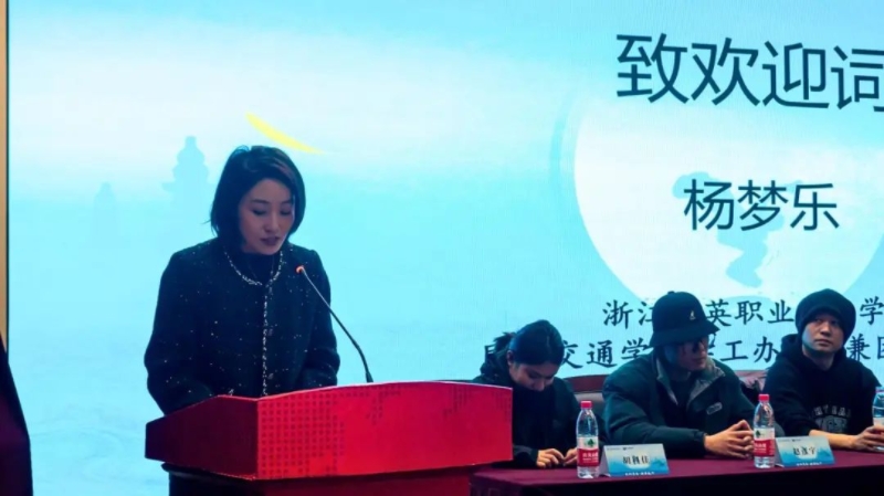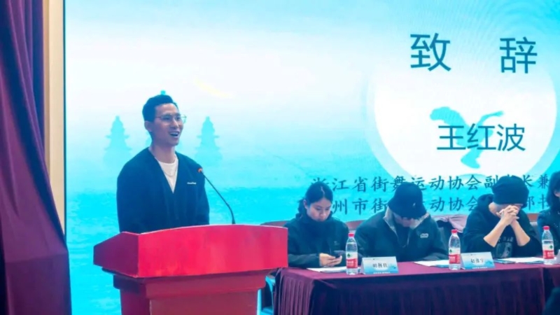 SD街舞社社团指导老师杨梦乐在成立会上发表致辞,她表示看到杭州市青年街舞队扬帆起航,作为其中一份子倍感欣慰。值此杭州市青年街舞队扬帆起航之际,我倍感欣慰与鼓舞。这不仅是对杭州青年街舞文化的里程碑式见证,更是新时代街舞运动蓬勃发展的生动注脚。期待青年街舞队以舞为媒,用青春律动诠释时代精神,以创新编排展现文化自信,为杭城街舞事业注入更多育英力量!