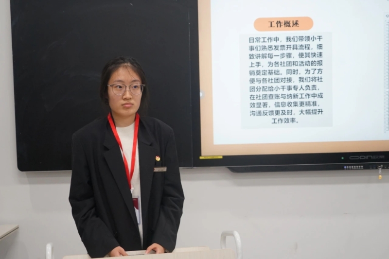 社团管理中心各部门干部有序的对本学期工作进行汇报。汇报中,大家汇报总结了以往的工作经历、工作心得以及对未来展望,并结合自身在工作中存在的不足之处,提出改进方案。