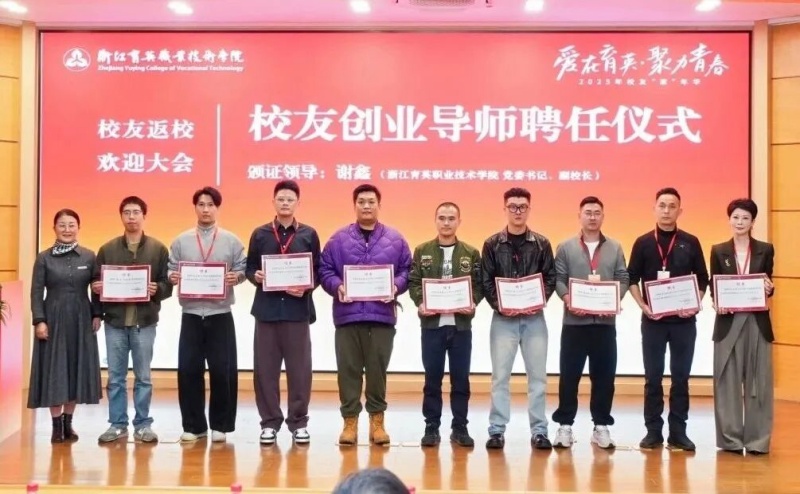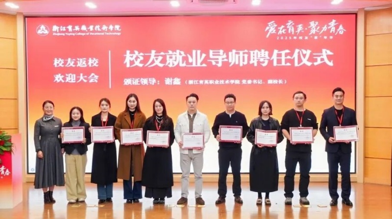 谢鑫为2003级酒店管理专业王麟、2004级计算机网络专业王琳栋等18名校友分别颁发就业导师、创业导师聘书,助力在校生职业规划与创业实践。