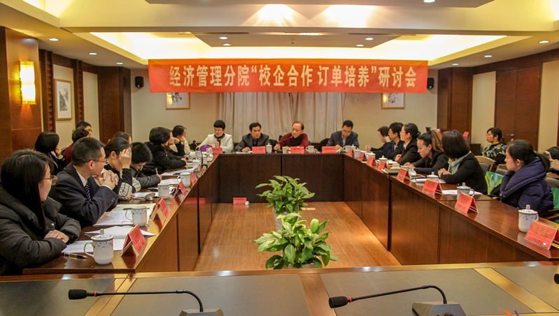 2016年12月15日,经济管理分院“校企合作 订单培养”研讨会在十楼会议室举行。学院院长盛健,党委书记、副院长王锡耀出席,来自杭州酒店和物管行业的13家合作企业17位总(副)经理或人事总监,学院教务处、产学合作处、经管分院主要干部、酒店管理专业和物业管理专业专任教师参加会议。分院院长助理周岚主持会议。 (经济管理分院 谢剑峰)