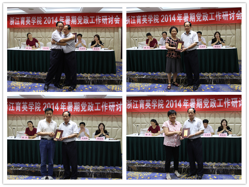 洪致平院长代表学院为育英学院建设与发展做出贡献的周治斌,寇玉霞、杨振顺、钱笙颁发了退休证书。周治斌等四位同志深情回顾了在育英学院工作生活感人的细节,表达对学院的美好祝福。