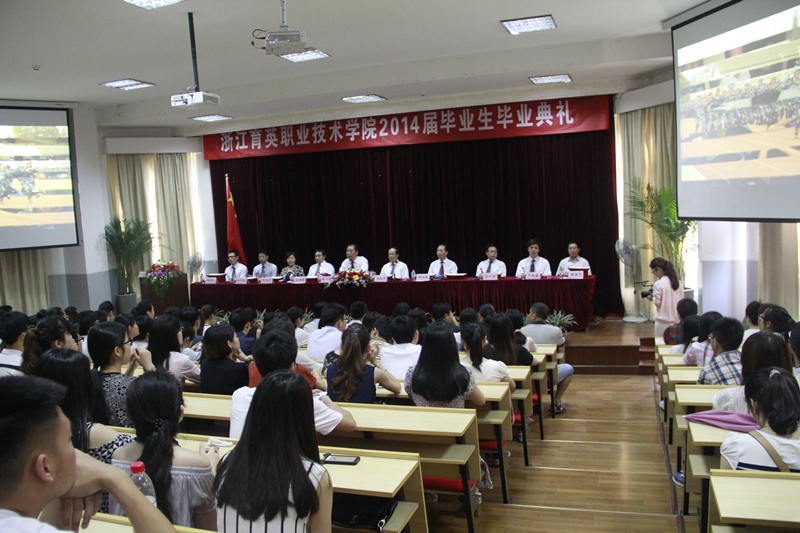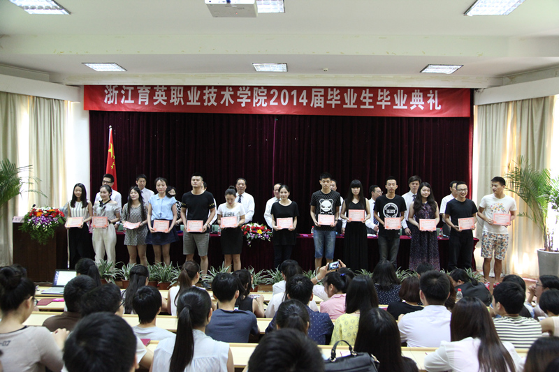 洪致平院长致辞,满怀激情和欣慰,列举了毕业生三年里取得的突出成绩。他说。2014届毕业生有187 人光荣地加入了中国共产党,62人获得省级优秀毕业生称号,145 人获得院级优秀毕业生称号,有3 人获得国家奖学金,49 人获得国家励志奖学金, 162 人获得学院一等奖学金,451人获得学院二等奖学金,933人获得学院三等奖学金,6人获得十佳大学生称号,157人获得育英之星称号,441人获得三好学生称号,473人获得优秀学生干部称号,900多人获得各种单项奖励。不仅如此,还参与了在浙江省乃至全国都极有影响的竞技项目,得到了社会的高度赞誉。