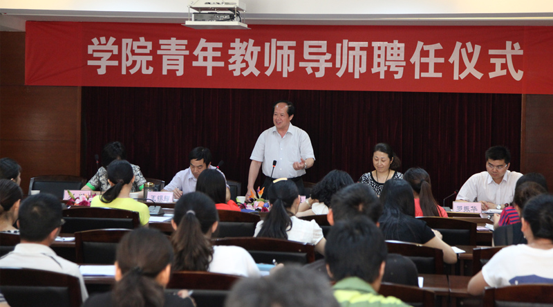 王锡耀宣读了《学院关于聘请27位副高以上教师担任30名青年教师业务导师的决定》,阐述了青年教师导师制实施的意义、目的、要求、管理和考核等。希望青年教师能更好更快地提高教学科研水平,深刻理解青年教师导师制的意义和深远影响。