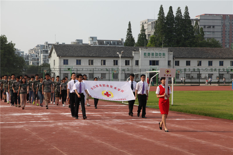 6月5日下午,学院第十届卫生健康知识与救护技能总决赛在田径运动场隆重举行。学院党委书记、院长洪致平,下沙高教园区办公室主任胡惠华,学院党委副书记、副院长,院红十字副会长周治斌,学院副院长,院红十字会会长陈六明,学院副院长,院红十字会副会长黄爱平等领导出席本次大赛。