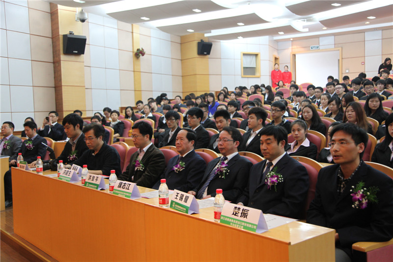省粮油食品进出口公司董事副总经理濮志江,信息中心主任洪建生,办公室副主任诸葛渊,平台运营主管楚振,学院党委书记、院长洪致平,副院长王锡耀,校企合作与实训培训指导中心主任崔海辉,工商系主任欧阳驹,经贸系主任谢厚华出席。12级电子商务和国际贸易两个专业学生参加。