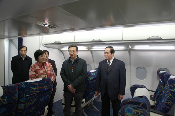 梁国耀向在场的轨道专业同学表示感谢和称赞。随后参观了校史室和空客300全真模拟机舱乘务员实训室。赵燕介绍学院已经在落实轨道实训室建设。