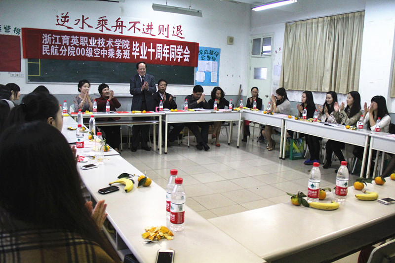 10月19日下午,空中乘务专业00级校友毕业十周年座谈会在1406教室召开,首批空中乘务专业的学子从四面八方相约杭州,相聚在母校育英学院。大会由00空中乘务班王丽娜主持。