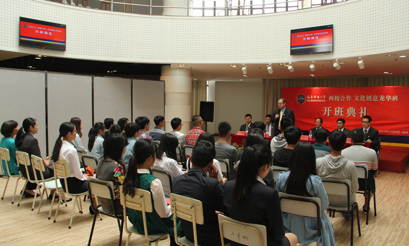 10月9日,台湾龙华科技大学、浙江育英职业技术学院两校合作文化创意“龙华班”举行开班典礼。学院党委书记、院长洪致平,副院长王锡耀,教务处副处长罗振华、艺术系主任宋连凯等出席。台湾龙华科技大学校长葛自祥及国际事务暨公共关系中心副主任尹协麒应邀出席。