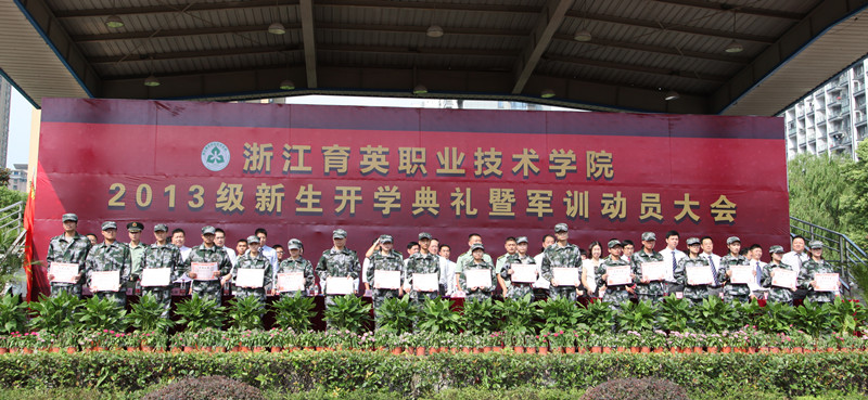 军训教官代表夏哲、教师代表夏天、沈永青,老生代表邵佳丽、新生代表唐煜家分别上台发言,表达了对新生在军训、学习和生活的美好祝愿。