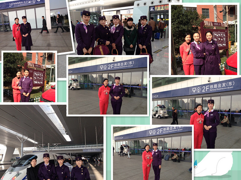 每年的春运、节假日,当几亿人像候鸟似地在铁路上奔波时,我们的学生也在为铁路事业默默的做着贡献。11空乘A、B班的22名学生在上海铁路局杭州客运段实习。11月18、19、20日上午, 民航分院实践指导教师包静静利用一天半的时间走访上海铁路局杭州客运段实习学生14名。由于学生的工作时间都不一致,休息时间也不一致,以致走访花的时间也比较多,地点也都不一样。