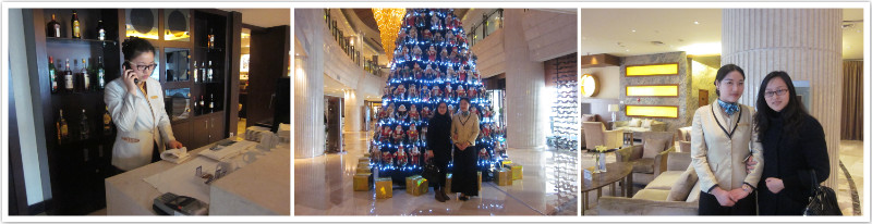 12月19日,我前往该酒店走访,看望实习同学。一进酒店远远的就看到谢琳同学对着我微笑,原来近日她被安排到大堂负责“圣诞自助餐”的销售工作。她跟我说,酒店每逢一些节假日,举办一些活动,都会让她来负责销售,上次月饼销售中她的表现得到了领导的表扬。同时她还跟我介绍了平时她所在的大堂吧的工作情况,因为该酒店往来的外国客人比较多,所以经常会用英语交流,幸亏她已经过了大学英语四级,现在应对比较自如。接着,我来到酒店8楼,看望在行政酒廊工作的孙倩同学。刚好,有几位客人在,孙倩同学正在忙碌的接待他们。看着昔日的学生现在学有所成,我感到由衷的欣慰。
