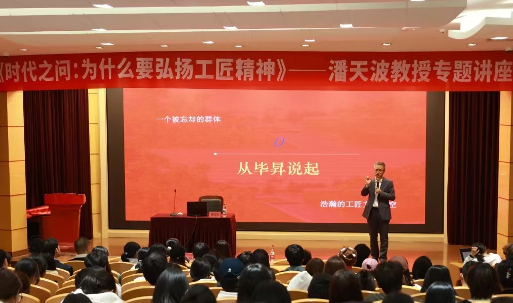 潘教授指出,新时代弘扬中华工匠精神,不仅是推动高质量发展、实现“制造强国”目标的核心动力,也是传承中华优秀传统文化、培养时代新人的重要途径,更是全面建设社会主义现代化国家的必然要求。他鼓励同学们将工匠精神融入日常学习和成长之中,把“如切如磋、如琢如磨”的工匠品格铭记于心,以个人的“微光”汇聚成制造强国的“星河”,在中华民族伟大复兴的征程中,留下青年一代独有的精度与高度。