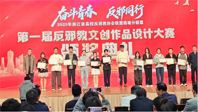 本次大赛由杭州市钱塘区委政法委、区反邪教协会等单位联合主办,并获省委政法委、省教育厅等多部门指导支持。我校师生凭借富有创意的作品,有效传递了反邪教的正向声音,充分彰显了我校在反邪教文化创作与宣传教育方面的扎实成效,是对相关工作成果的有力印证。