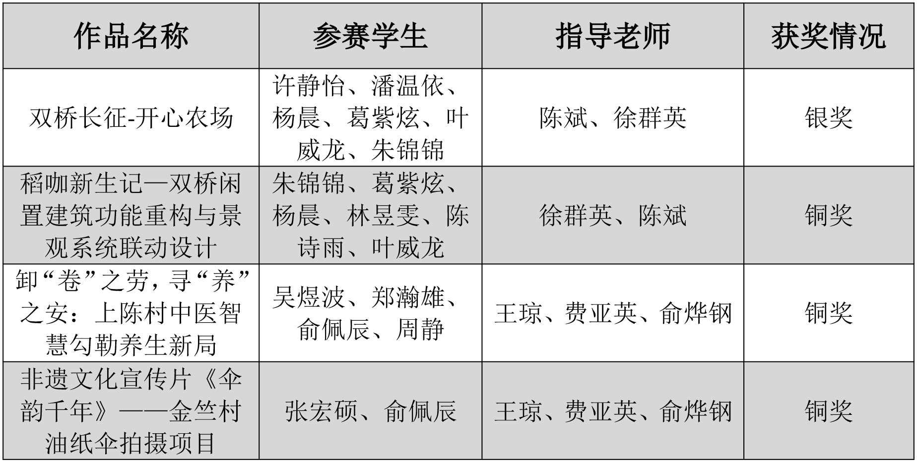 自今年6月大赛启动以来,我院参赛师生历经实地调研、村委沟通、方案设计与决赛答辩等环节,完成了从构思到呈现的全过程实践。获奖作品涵盖了农场设计、乡村改造、非遗文化等多个方向,充分展现了我院学子多元化的设计视角和以设计服务乡村的深切情怀。此次大赛佳绩的取得,是围绕学校“以赛促教、以赛促学”教育理念的生动体现。备赛期间,学院领导高度重视,以环艺教研室为主的教师团队全程悉心指导;参赛同学们则展现出刻苦钻研、勇于创新的精神,将课堂所学与乡村实际紧密结合,最终交出了一份令人满意的答卷。