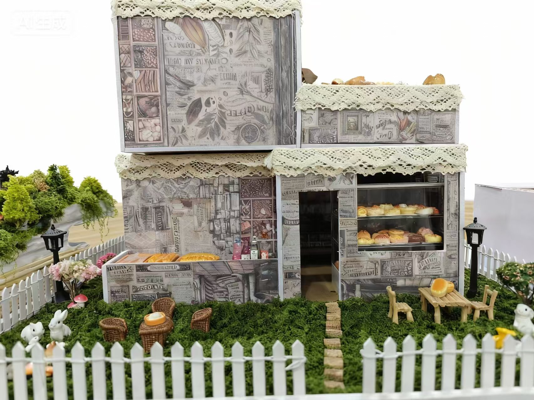 展览现场,不同主题的模型作品错落陈列,涵盖室内空间模型、景观设计模型、建筑概念模型等多个类别,造型别致、创意纷呈。从简约雅致的住宅空间模型到充满生态理念的公园景观模型,从手工切割拼接的木质结构到结合3D打印的精准构件,每一件作品都凝聚着同学们“听-讲-练-创”的实践心血。部分作品巧妙运用环保材料,将废旧纸板、麻绳、细沙等转化为设计元素,展现了独特的艺术巧思;还有同学尝试融入AI辅助设计思维,通过数字化建模优化空间比例与结构布局,让模型既具创意性又不失科学性。
