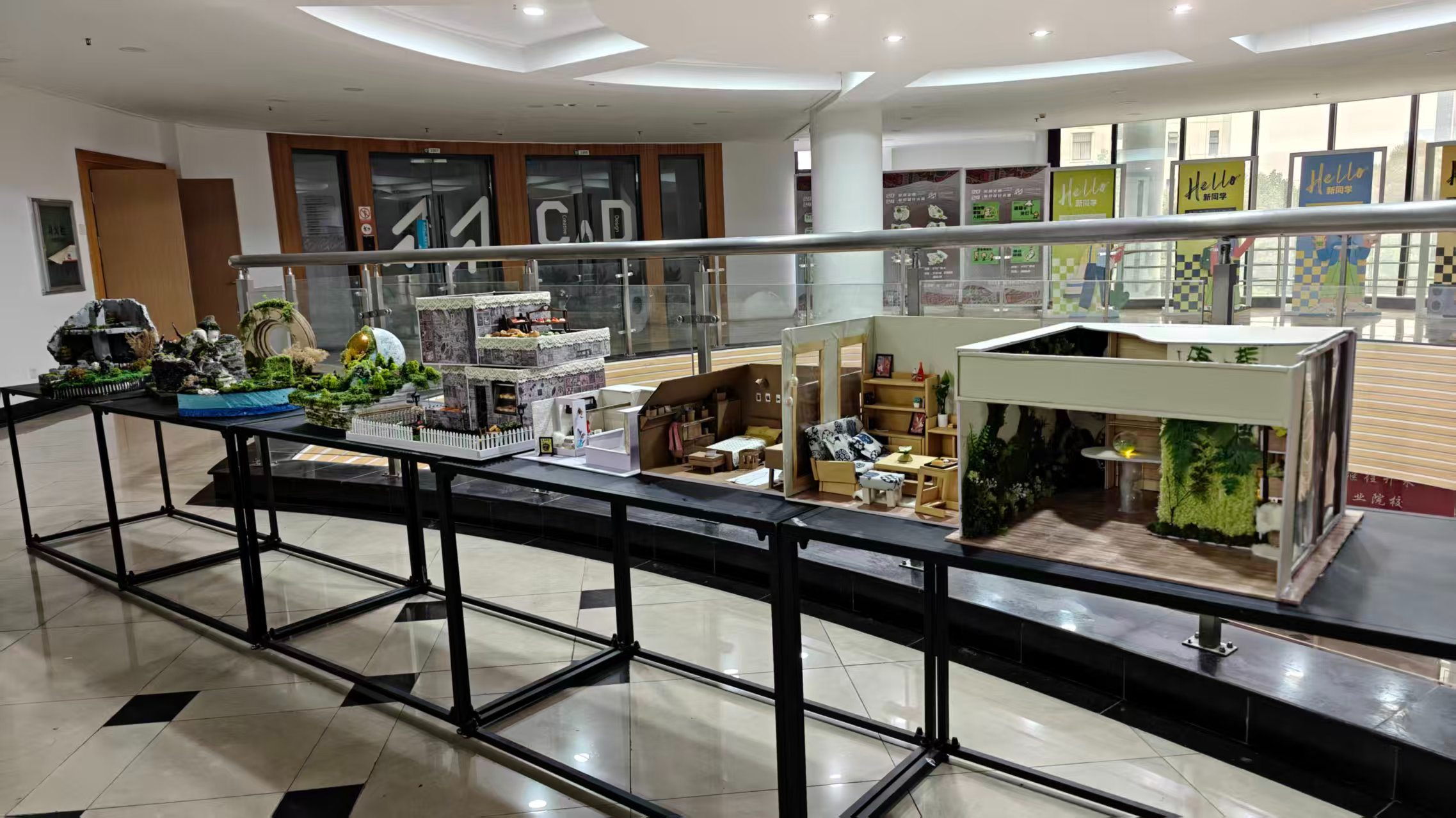 为提高学生专业能力,展现创意设计学院环艺学生的专业风采,使学生达到相互交流,共同进步的教学目的,第十八周,24环艺A班在二号楼三楼大厅举办了一场生动的模型作品展。学生在老师的指导下,认真创作作品,作品内容丰富多彩。作品是环艺学生个人审美认知的表达,也是学生对模型设计与制作创新的坚持。此次展览不仅集中呈现了大二学生的专业学习成果,更以作品为纽带,推动了“教”与“学”的双向赋能。