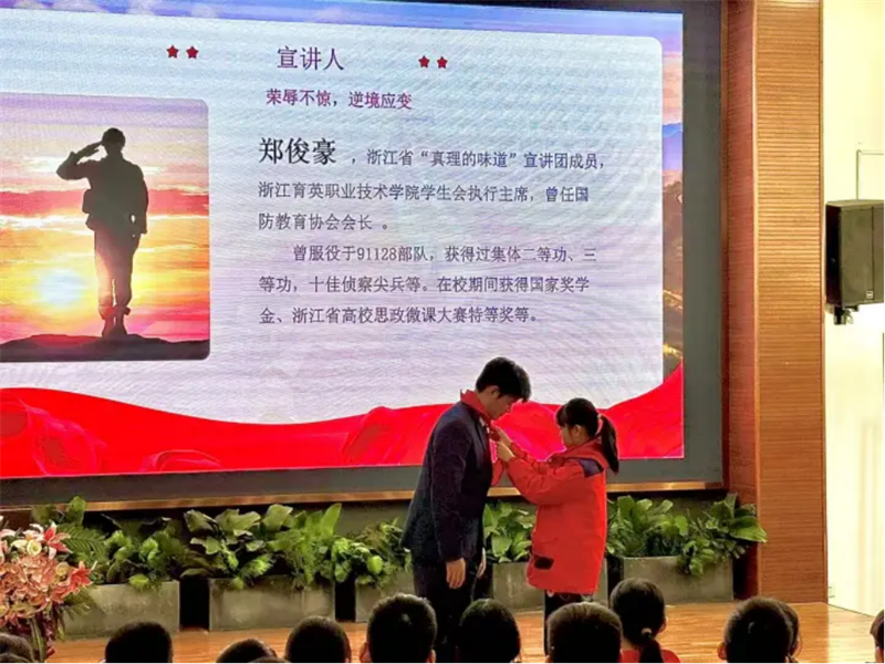 “一个人优秀还不够,带着更多人一起变优秀才更有意义。”带着这份信念,郑俊豪开始把自己的军旅经历与成长感悟分享给更多同学。他精心打磨的思政微课《017号的青春答卷》,在浙江省高校思政微课大赛中从全省610名本专科选手中脱颖而出,荣获特等奖(第一名)。