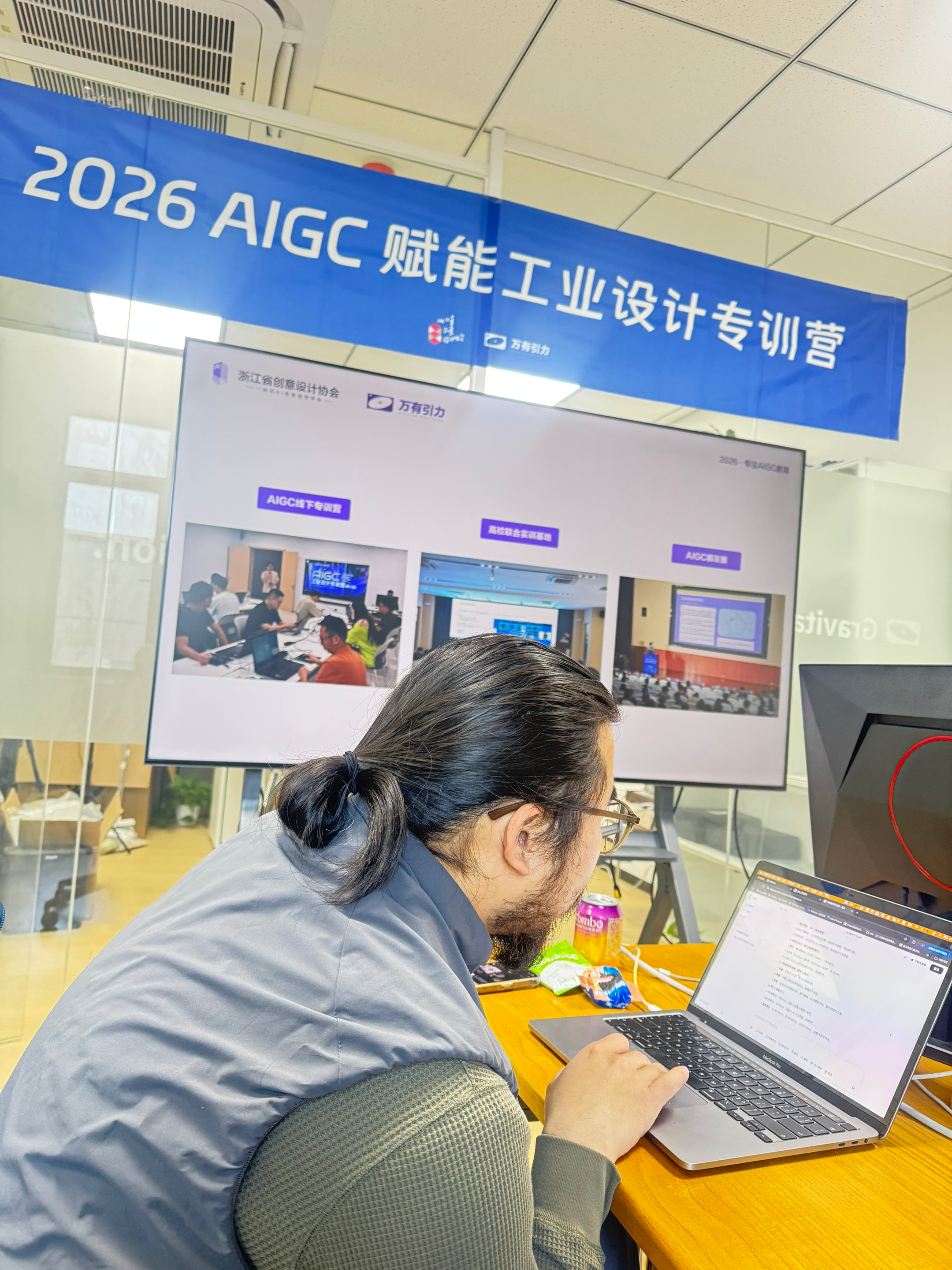 为抢抓人工智能时代工业设计发展新机遇,推动设计教育与前沿技术深度融合,近日,我校创意设计学院李晓、范志两位老师赴杭州参加由浙江省创意设计协会与万有引力联合主办的“2026 AIGC赋能工业设计专训营”,系统学习AIGC在工业设计全流程中的应用方法与实践案例。