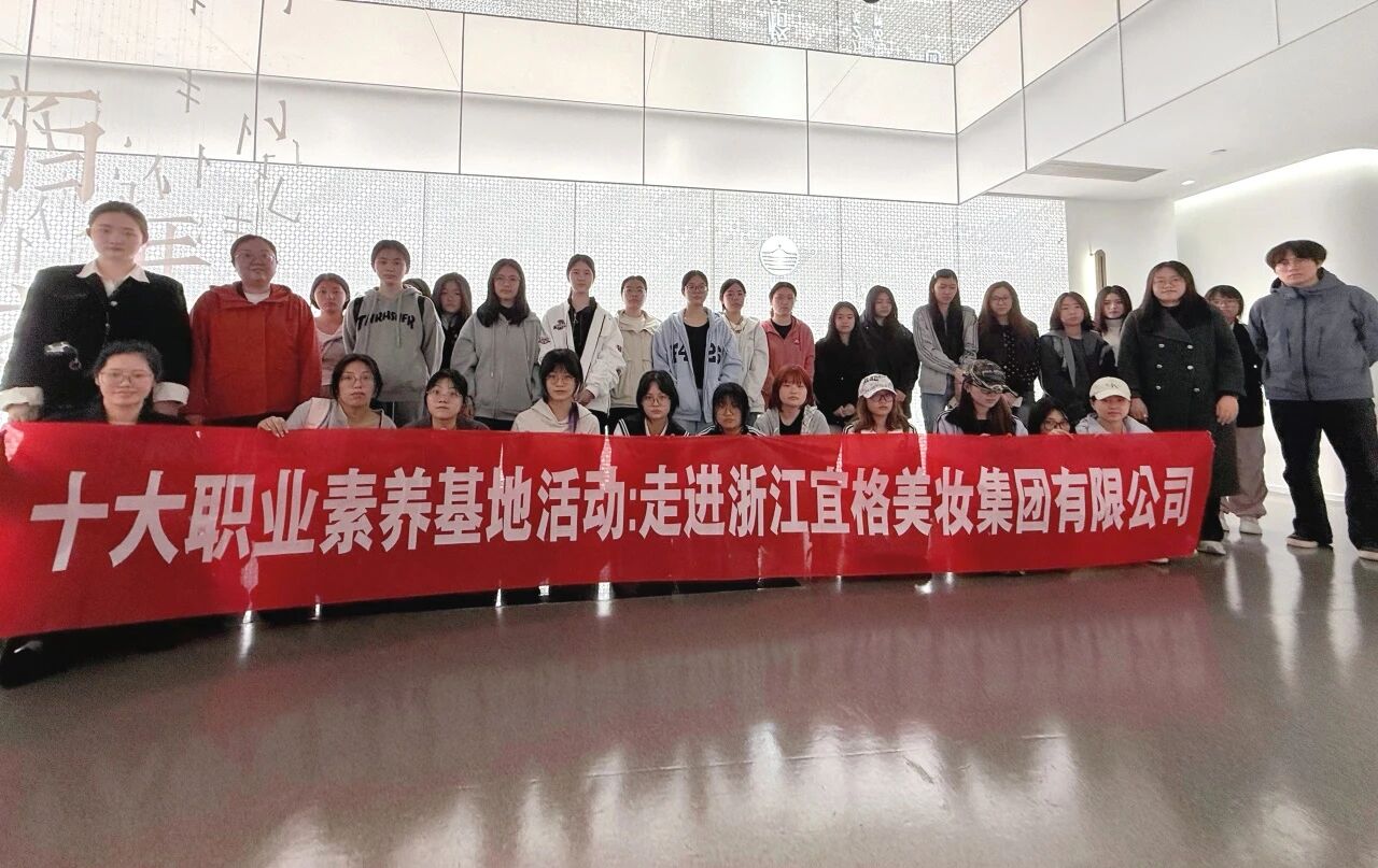 为深化产教融合,提升学生职业素养与审美能力,3月31日,育英师生走进浙江宜格美妆集团有限公司(花西子),开展职业素养基地实践活动。活动由学务部副部长王亦飞、教师童云和人物形象设计专业教师程雯婕带队,同学们沉浸式探寻国货美妆背后的文化底蕴与创新逻辑。