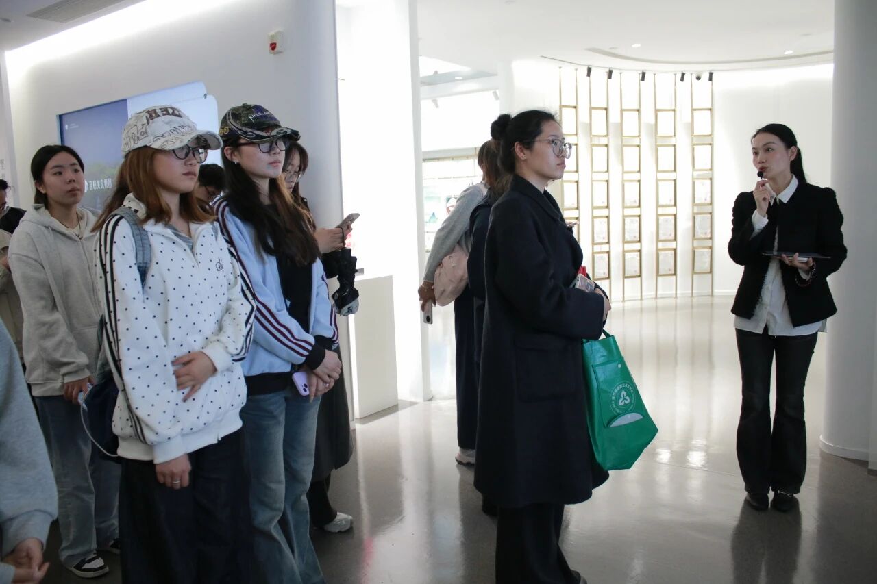 步入花西子总部,浓郁的东方美学空间令人眼前一亮。在企业文化展厅,讲解员娓娓道来宜格集团十年发展历程。从初创构想到成长为国潮美妆标杆,花西子始终秉持“东方美学,匠心造物”的品牌理念。同学们在产品迭代展示区驻足良久,“同心锁口红”“浮雕彩妆盘”等爆品的诞生,生动诠释了“产品即作品”的匠人精神。