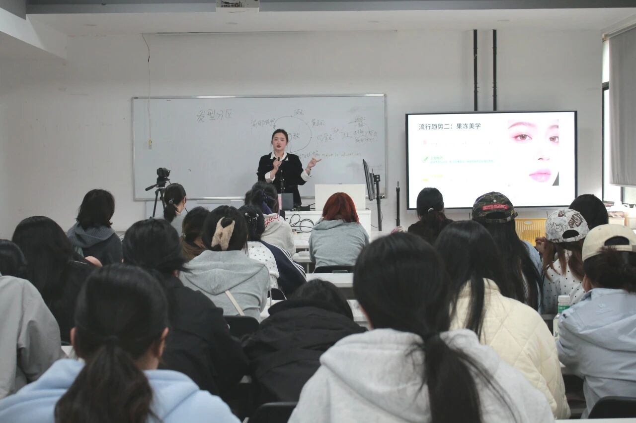 结束企业参访,程雯婕在2314教室为大家带来了春日妆容专题课程,将东方美学理念与现代美妆技艺有机融合。跟随老师的示范教学,同学们认真观摩、积极互动,将美学认知融入实操,切实提升专业技能。